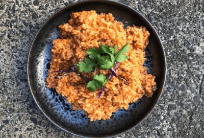 Brown rice is a whole rice that has only had the inedible outer hull removed, leaving the bran and the germ. This gives it a nutty and much deeper flavour than white rice, which has had these layers removed and is also much more nutritious. The bran and germ contain many minerals including magnesium, manganese, zinc, iron and phosphorus as well as a range of B-vitamins (however, some B vitamins are lost in the cooking). The bran also contains a large amount of fibre that is beneficial for our gut flora, essential fatty acids and protein.